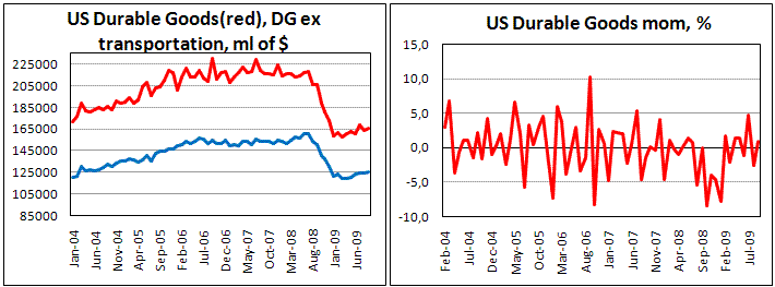 По результатам сентября заказы на товары длительного пользования выросли в Штатах на 1,0%, заказы без учета транспорта выросли на 0,9%, сообщило сегодня Census Bureau. Фактические показатели «недотянули до прогнозных уровней прироста в 1,5% по общему показателю, но оказались лучше ожиданий (+0,6%) без учета транспортного сектора. Как отмечается рыночными комментаторами, активность в производственном секторе растет, что является благоприятным сигналом для экономики. Тем не менее, динамика этого роста остается слабее ожиданий. Об этом говорят падающие индексы производственной активности от Федеральных Резервных банков, ухудшившиеся потребительские настроения, а теперь и более слабые показатели роста заказов. Такая статистика заставила Goldman Sachs понизить прогноз по ВВП за третий квартал на 0,3 проц. пункта до 2,7%, против среднего рыночного прогноза в 3,1%.