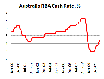 - РБА повысил ставку до 4,5%, но скорее всего, возьмет паузу на несколько месяцев