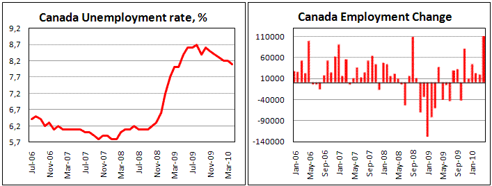 - Рынок труда в Канаде прибавил 108,7 тысяч рабочих мест, правда, 64,8 тыс. из них на неполный день
