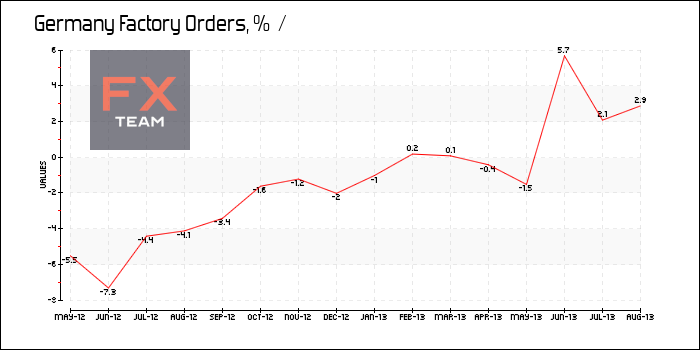 Единая валюта несколько ослабла после выхода более слабых, чем ожидалось, данных по заказам из Германии, которые отметили спад на 0.3% м/м, хотя годовой темп ускорился с 2.3% до 3.1%. EURUSD упала ниже 1.3570, при этом сохраняется очень узкий торговый диапазон на фоне отсутствия каких-либо сигналов о прогрессе переговоров по бюджету и уровню госдолга США, а множество статистических публикаций было отменено из-за закрытия правительства.