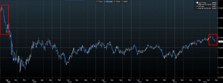 Доллар ночью продолжил набирать силу после роста во вторник. Индекс доллара коснулся уровней, которые последний раз фиксировались в середине сентября прошлого года, и с начала этой недели, мы также видели, что пара EUR/USD пришла к новым минимумам за год. Фунт падает седьмую неделю подряд против доллара. Подобного по продолжительности снижения не было с августа 2008 года в разгар глобального финансового кризиса, когда доллар рос почти против всех валют. Тогда он потерял 12%, а сейчас - чуть больше 3%. Конечно, тогда были совсем другие времена, однако различия демонстрируют более низкую среду волатильности в данный момент. Что касается сегодняшнего дня, фунт будет привлекать внимание после выхода протокола августовского заседания Комитета по монетарной политике. После выхода отчета по инфляции, неожиданности маловероятны, существует низкая вероятность сценария, при котором один из членов проголосует за рост ставок, что приведет к развороту фунта и компенсации хотя бы части снижения на фоне покрытия коротких позиций. Протокол ФРС публикуется этим вечером, и будет рассматриваться на предмет изменения тона.