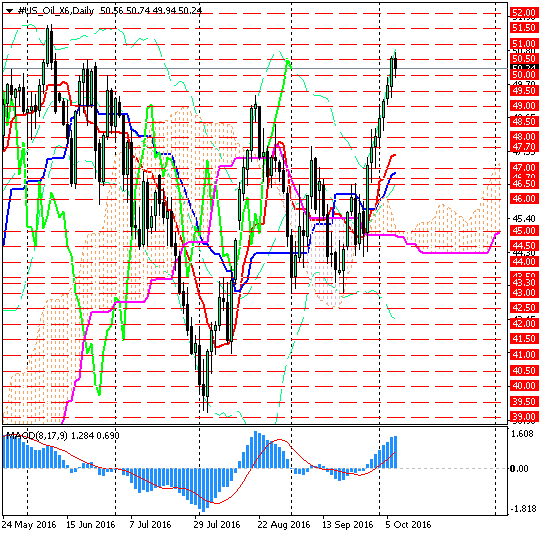 В середине недели цены на нефть пробили максимумы августа чуть выше уровня 49.30.