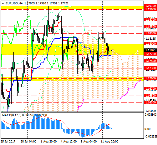 Пара EUR/USD в понедельник корректировалась вниз от уровня 1.1830, нивелировав почти весь рост пятницы. Снижение замедлилось около линии Kijun (1.1770) на 4-часовом графике.