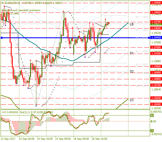 Продавать ниже 1.1945 с целями на 1.1920 и 1.19.
