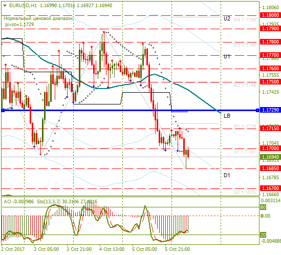 Осциллятор стохастик растет из зоны перепроданности (возможен локальный откат вверх, к уровню pivot 1.1729).