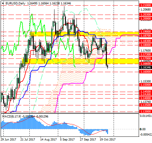Пара EUR/USD резко упала в четверг после оглашения итогов заседания ЕЦБ, которые оказали давление на евро. Пара пробила вниз зону поддержки на 1.1660-1.17, которая разворачивала движение вверх в августе и октябре.