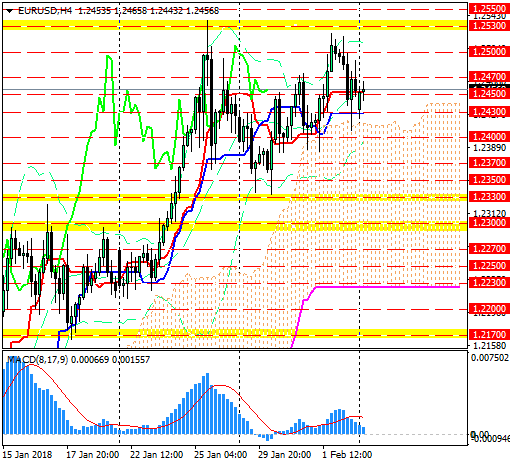Пара EUR/USD снизилась в пятницу, но продолжает торговаться в боковом диапазоне 1.24-1.2530. Пара протестировала облако Ишимоку на 4-часовом графике, от которого отразилась вверх.
