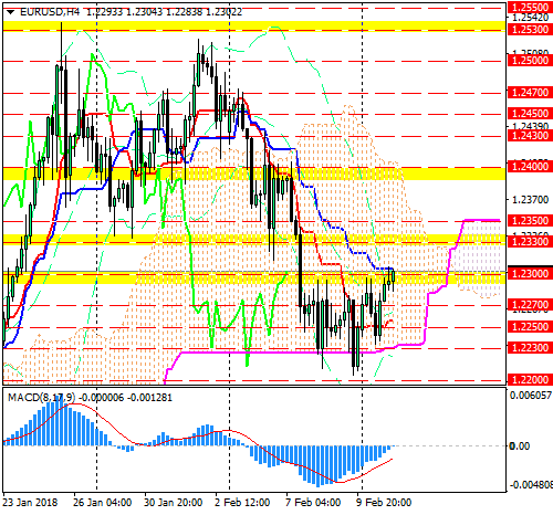 Низ облака Ишимоку устоял, что позитивно для продолжения роста. Если EUR/USD преодолеет уровень 1.23 и линию Kijun, то может нацелиться на уровни 1.2330 и 1.2350. В противном случае, снижение по направлению к нижней границе облака (1.2230) может возобновиться.