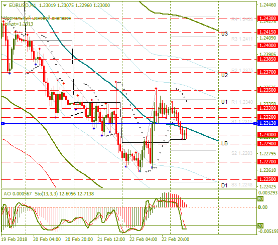 EUR/USD, не дойдя немного до низа диапазона февраля, пытается развернуться вверх. Но цели медведей могут быть по-прежнему расположены на 1.2230, и даже чуть ниже.