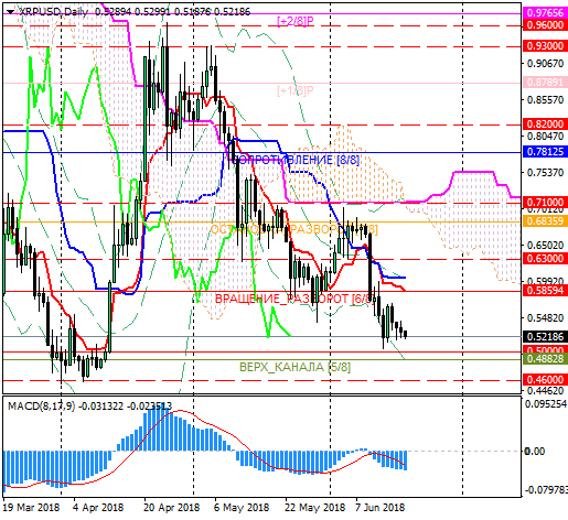 Ближайшими целями медведей являются минимумы начала апреля на 0.46, и при их пробое, XRP может направиться к уровням 0.40, 0.36 и 0.30. Более дальними целями снижения могут выступать минимумы декабря на 0.20.