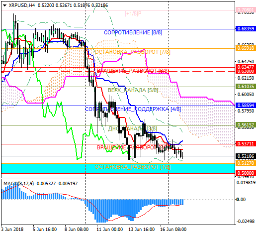 В начале прошлой недели XRP пробила вниз облако Ишимоку на 4-часовом графике. Снижение в середине недели замедлилось около уровня 0.51.