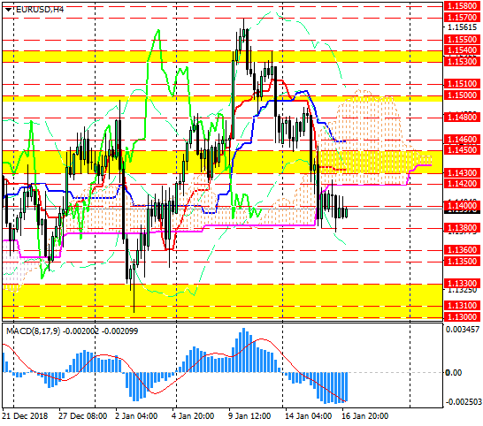 Пара EUR/USD в среду консолидировалась чуть ниже облака Ишимоку на 4-часовом графике. Снизу поддержку оказывал уровень 1.1380, сверху в качестве сопротивления выступала нижняя граница облака (1.1420).