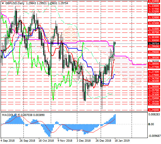 Ближайшими целями быков могут выступать уровни 1.3030 и 1.3070, и более дальними - 1.3150-1.3170 (максимумы ноября). В то же время, нельзя исключать краткосрочной коррекции к уровню 1.29 и верху облака (1.2870).