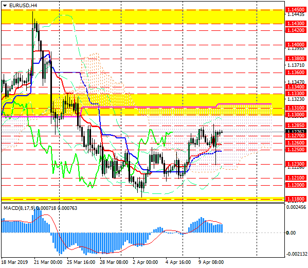 Пара EUR/USD в среду падала к уровню 1.1230, но затем отыграла всё снижение и снова поднялась выше трендовых линий на 4-часовом графике; сверху сопротивление оказывал уровень 1.1285.
