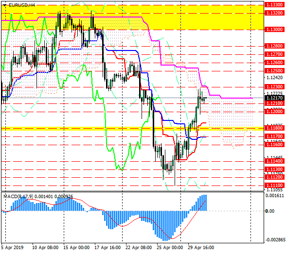 Пара EUR/USD выросла во вторник, протестировав облако Ишимоку на 4-часовом графике; рост замедлился около уровня 1.1230.
