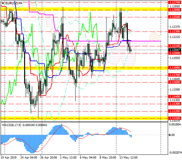Пара EUR/USD во вторник поднималась выше линии Tenkan, но затем упала наже линии Kijun на 4-часовом графике; снижение замедлилось около уровня 1.12.