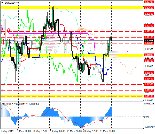 Трендовые линии краткосрочного тренда Tenkan и среднесрочного тренда Kijun на Н4 развернулись вверх. Линия Chinkou пробила цену вверх.
