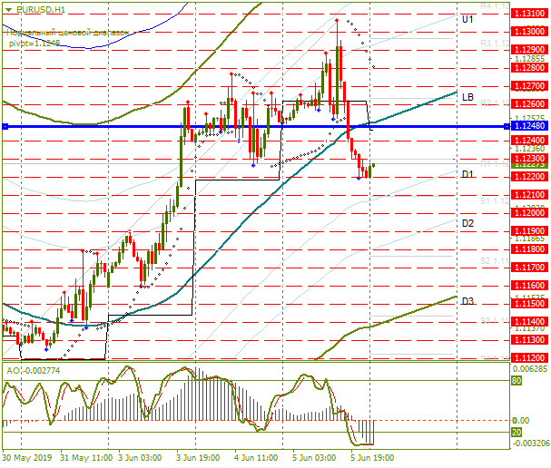 Пара EUR/USD в среду упала ниже линии баланса (LB).