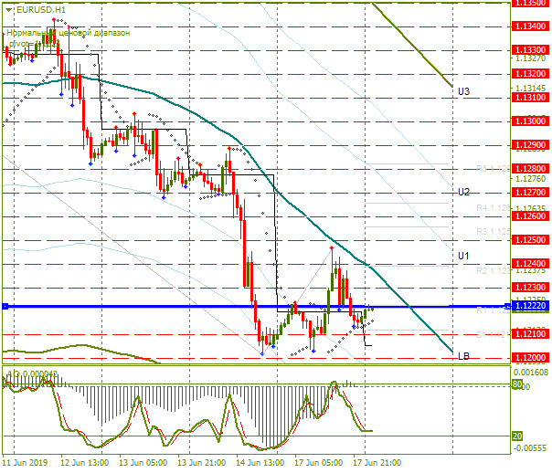 Пара EUR/USD в понедельник торговалась ниже линии баланса (LB), тестируя линию D1.