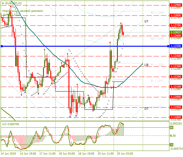 Пара EUR/USD в среду поднялась выше линии баланса (LB), протестировав линию U1.