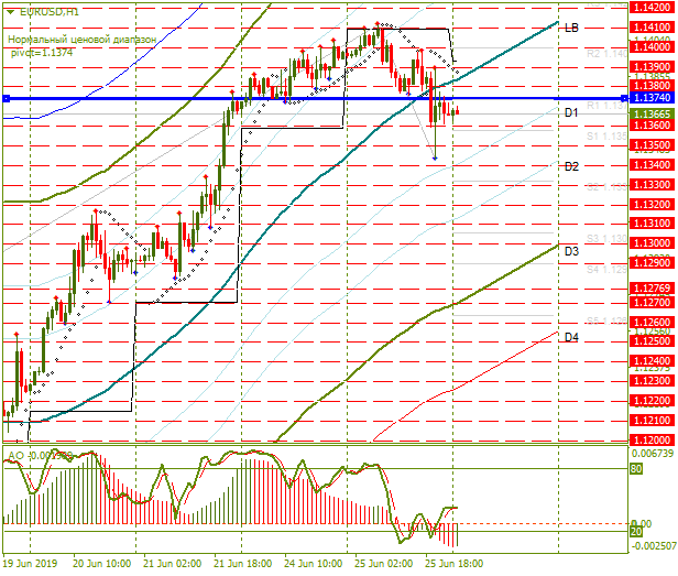 Пара EUR/USD во вторник упала ниже линии баланса (LB).