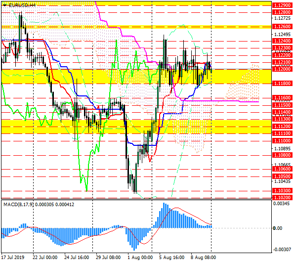 Пара EUR/USD в пятницу торговалась с повышением, поднявшись к линии Tenkan на 4-часовом графике. Зона 1.1180-1.12 пока оказывает поддержку.
