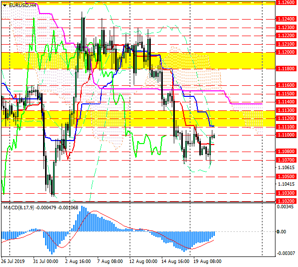 Пара EUR/USD выросла во вторник впервые после пяти дней снижения. Пара поднялась выше линии Tenkan на 4-часовом графике; рост замедлился чуть ниже уровня 1.1110.