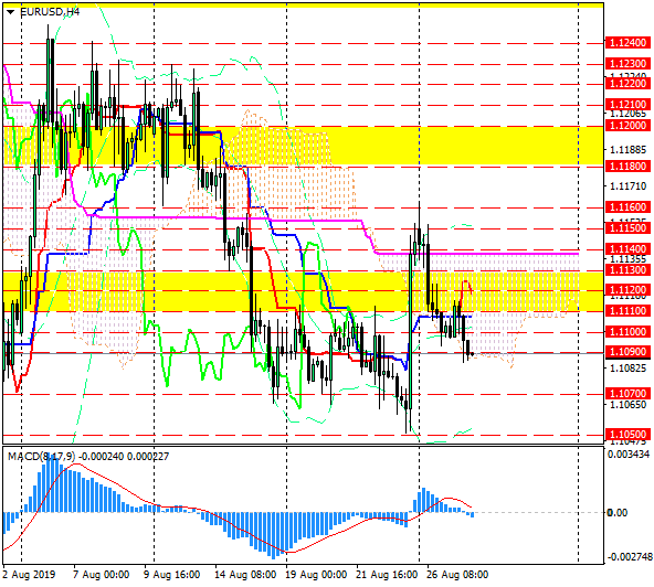 Пара EUR/USD снизилась во вторник после того, как не смогла удержаться выше уровня 1.1110. Пара опустилась к нижней границе облака Ишимоку на 4-часовом графике около уровня 1.1090.