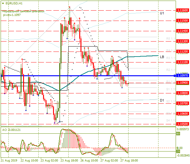 Осциллятор стохастик находится около зоны перепроданности (возможен локальный откат вверх, к уровню pivot 1.1097).