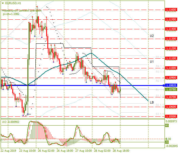 Пара EUR/USD в среду торговалась ниже линии баланса (LB).