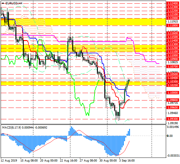Пара EUR/USD резко выросла в среду, поднявшись выше уровня 1.10 и линии Kijun на 4-часовом графике; рост замедлился около уровня 1.1040.
