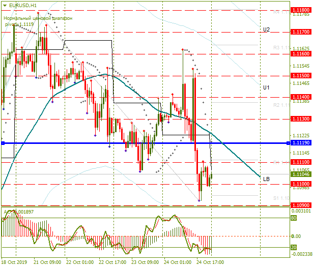 Осциллятор стохастик находится в зоне перепроданности (возможен локальный откат вверх, к уровню pivot 1.1119).