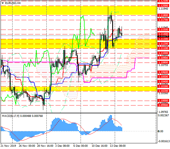 Пара EUR/USD в понедельник торговалась с повышением, но не смогла преодолеть сопротивления около 1.1150. Пара поднялась к трендовым линиям на 4-часовом графике.