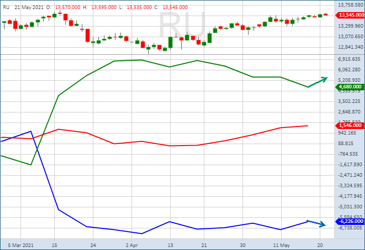 Хеджеры (COMMERCIAL) увеличили чистую позицию на продажу контрактов на рубль на 0.3 тыс. контрактов до 6.6 тыс. Хеджеры-операторы начали наращивать чистую позицию на продажу также после почти 4-недельного сокращения.
