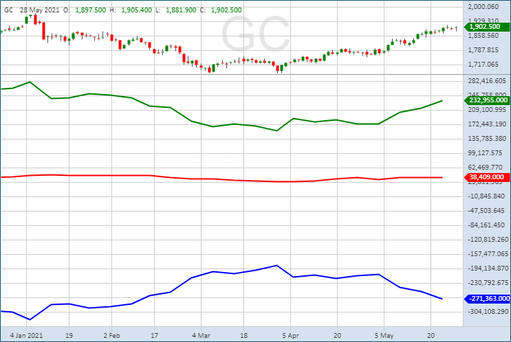 Крупные спекулянты (NON-COMMERCIAL) увеличили чистую позицию на покупку контрактов по золоту на 18.6 тыс. контрактов до 233 тыс. Крупные спекулятивные игроки наращивают чистую позицию на покупку третью неделю подряд. Чистая позиция стала максимальной с 9 февраля.