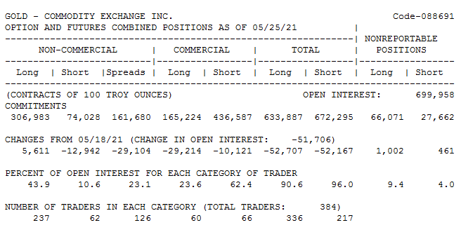 Согласно отчетам COT (Commitments of Traders), предоставляемым Комиссией по торговле товарными фьючерсами (CFTC) - за неделю, закончившуюся в прошлый вторник: