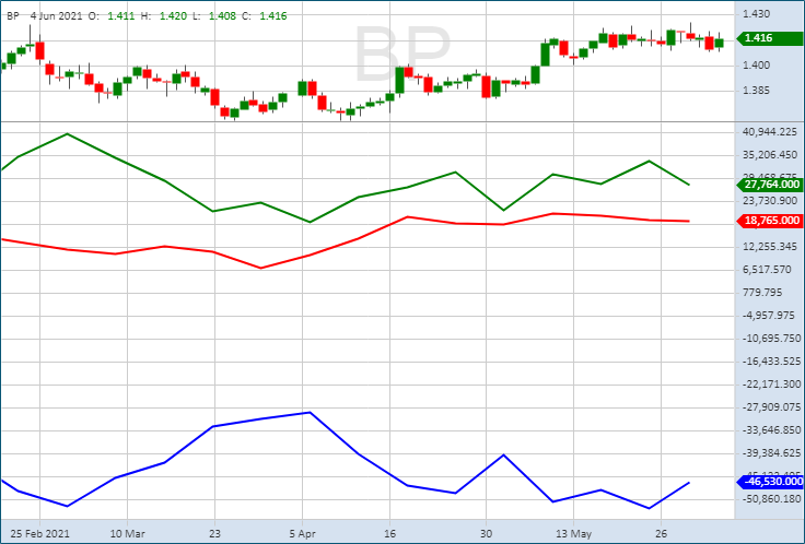 Крупные спекулянты (NON-COMMERCIAL) сократили чистую позицию на покупку пары GBP/USD на 6 тыс. контрактов до 27.8 тыс. Крупные спекулятивные игроки сократили чистую позицию на покупку после недельного наращивания. Чистая позиция начала снижаться от максимальных уровней с 9 марта.