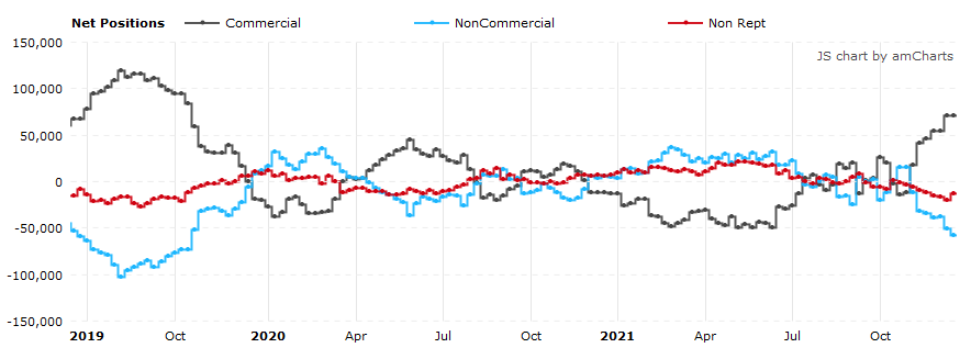 Согласно отчетам COT (Commitments of Traders), предоставляемым Комиссией по торговле товарными фьючерсами (CFTC) - за неделю, закончившуюся в прошлый вторник: