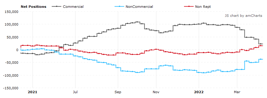 Согласно отчетам COT (Commitments of Traders), предоставляемым Комиссией по торговле товарными фьючерсами (CFTC) - за неделю, закончившуюся в прошлый вторник: