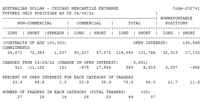 Крупные спекулянты (NON-COMMERCIAL) сократили чистую позицию на продажу AUD/USD на 12.1 тыс. контрактов до 37.5 тыс. Крупные спекулятивные игроки сокращают чистую позицию на продажу вторую неделю подряд, и уже 6 недель из 7 последних. Чистая позиция стала минимальной с 20 июля 2021 года.