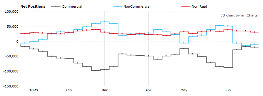Согласно отчетам COT (Commitments of Traders), предоставляемым Комиссией по торговле товарными фьючерсами (CFTC) - за неделю, закончившуюся в прошлый вторник: