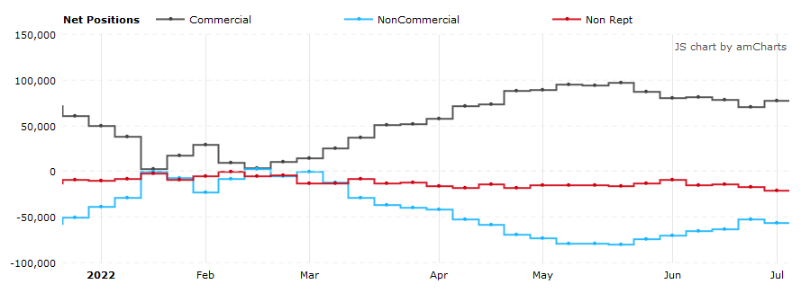 Согласно отчетам COT (Commitments of Traders), предоставляемым Комиссией по торговле товарными фьючерсами (CFTC) - за неделю, закончившуюся в прошлый вторник: