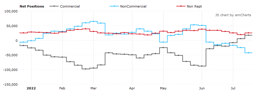 Согласно отчетам COT (Commitments of Traders), предоставляемым Комиссией по торговле товарными фьючерсами (CFTC) - за неделю, закончившуюся в прошлый вторник:
