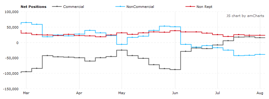 Согласно отчетам COT (Commitments of Traders), предоставляемым Комиссией по торговле товарными фьючерсами (CFTC) - за неделю, закончившуюся в прошлый вторник: