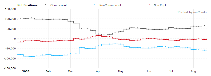 Согласно отчетам COT (Commitments of Traders), предоставляемым Комиссией по торговле товарными фьючерсами (CFTC) - за неделю, закончившуюся в прошлый вторник: