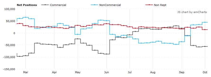 Согласно отчетам COT (Commitments of Traders), предоставляемым Комиссией по торговле товарными фьючерсами (CFTC) - за неделю, закончившуюся в прошлый вторник: