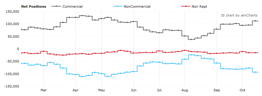 Согласно отчетам COT (Commitments of Traders), предоставляемым Комиссией по торговле товарными фьючерсами (CFTC) - за неделю, закончившуюся в прошлый вторник: