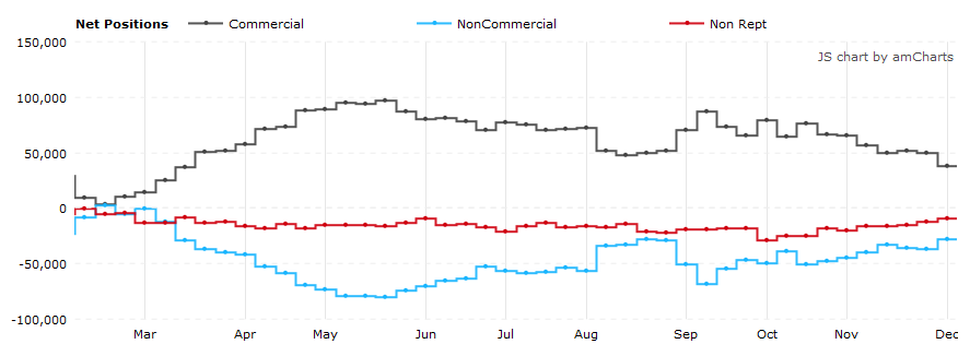 Согласно отчетам COT (Commitments of Traders), предоставляемым Комиссией по торговле товарными фьючерсами (CFTC) - за неделю, закончившуюся в прошлый вторник: