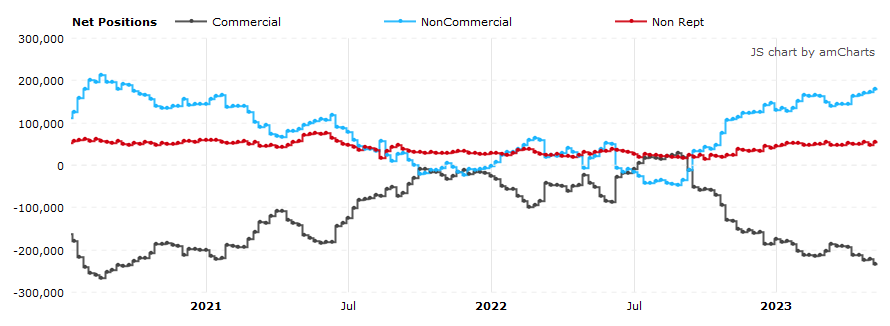 Согласно отчетам COT (Commitments of Traders), предоставляемым Комиссией по торговле товарными фьючерсами (CFTC) - за неделю, закончившуюся в прошлый вторник: