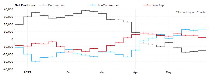 Согласно отчетам COT (Commitments of Traders), предоставляемым Комиссией по торговле товарными фьючерсами (CFTC) - за неделю, закончившуюся в прошлый вторник: